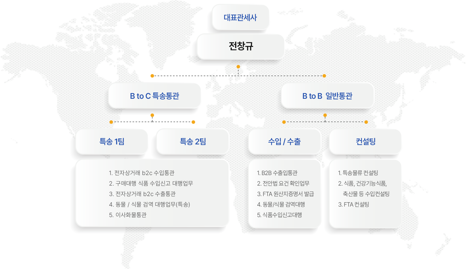 바탕으로 신속하고 정확한 업무처리(식품등 수입컨설팅 외에 동/식물 검역대행업무 & 통관/배송을 포함한 ons-stop-service )를 통해